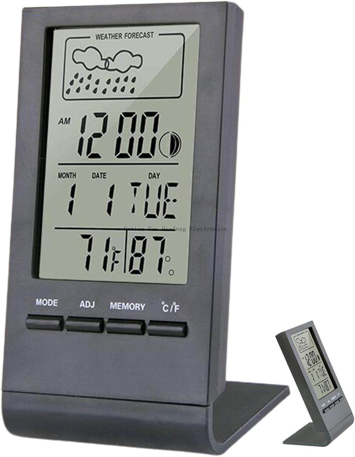 機能: 室内の温度と湿度、最大値と最小値の表示、時間、アラーム、週、日付、 ℃/℉ の切り替え可能、12/24時間